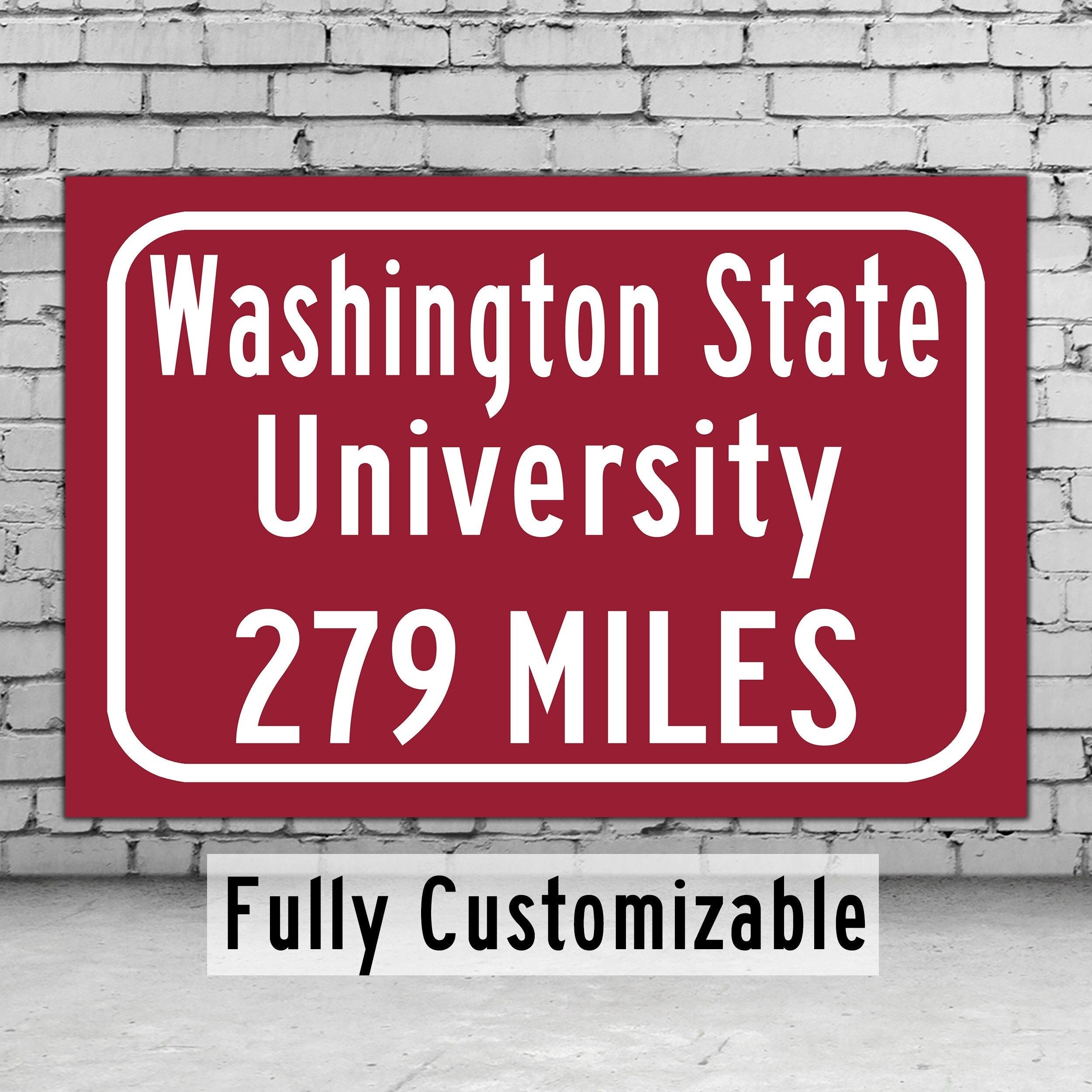 Personalized Highway Distance sign to Washington State University / Washington State Cougars / Pullman Washington /