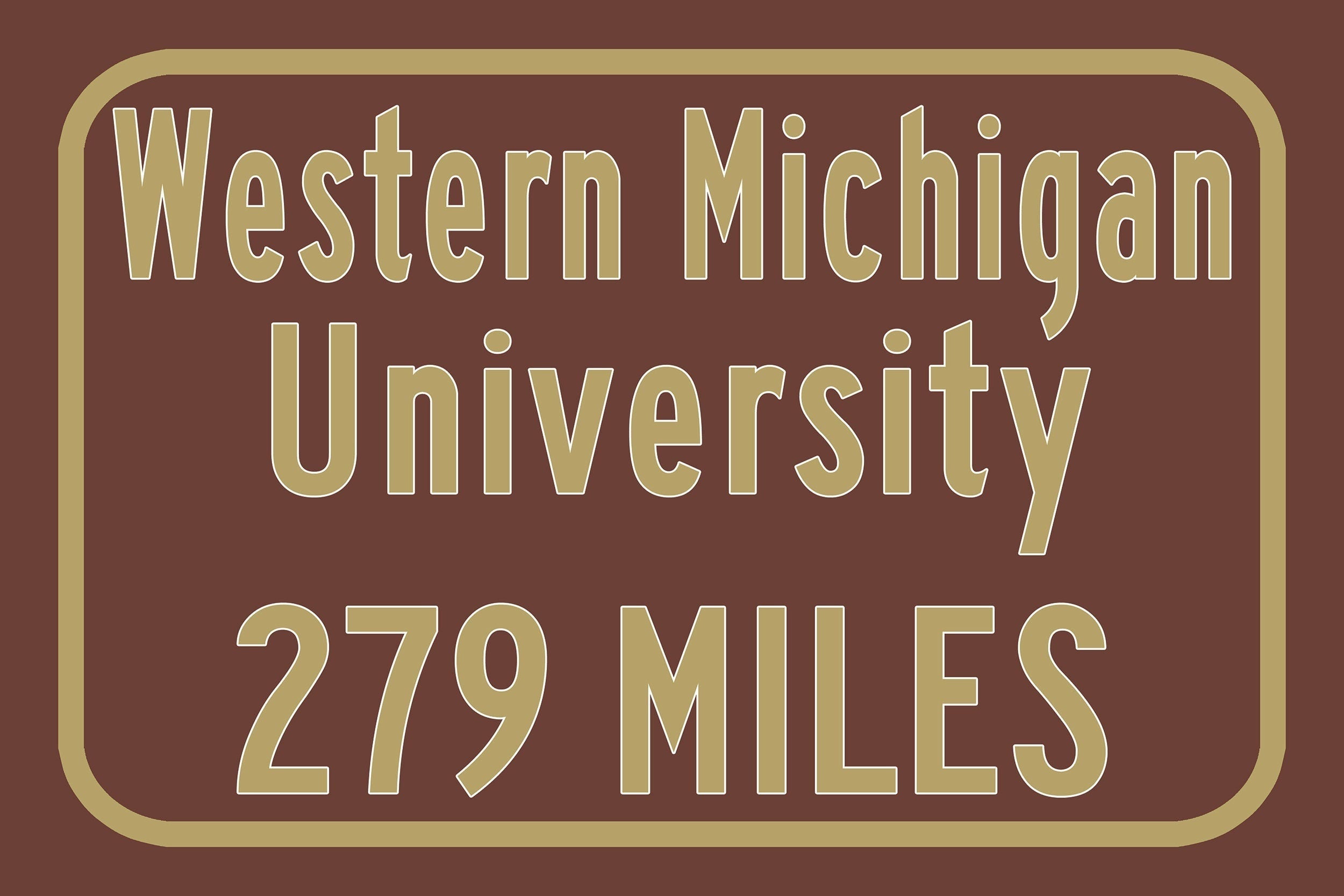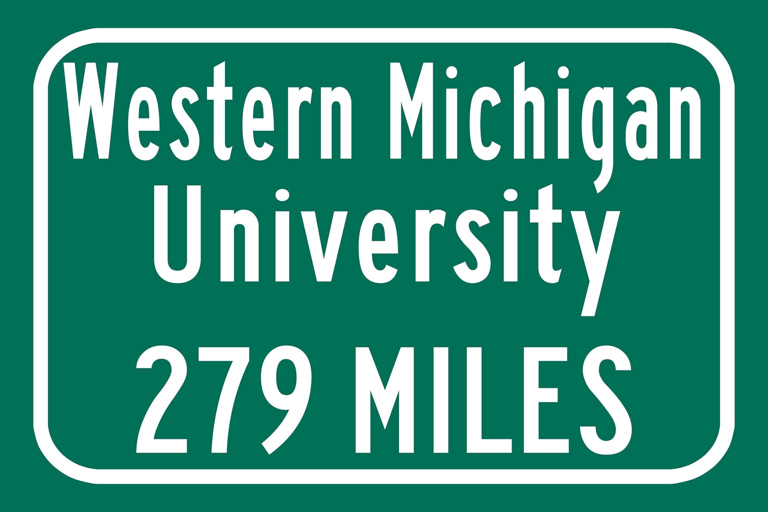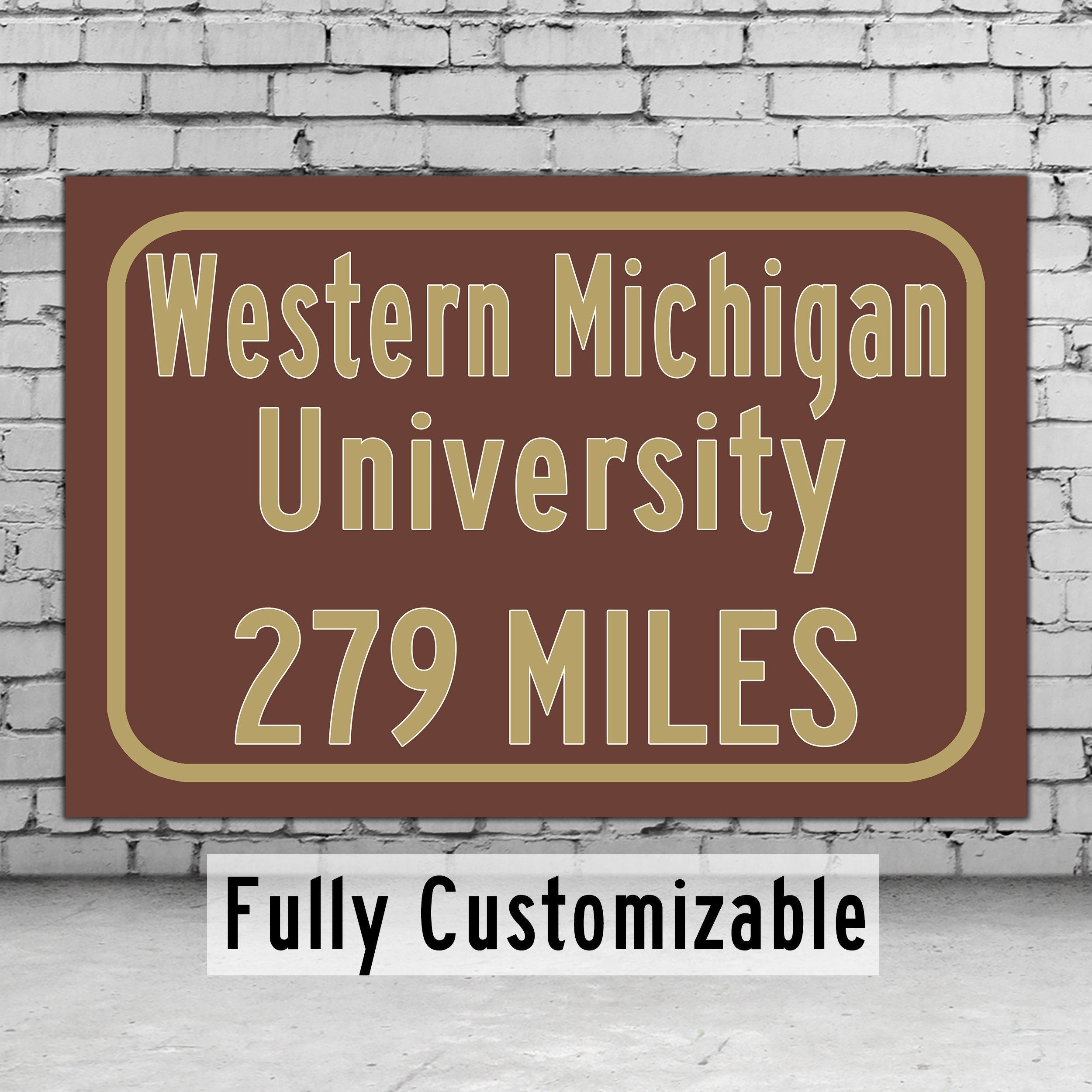 Personalized Highway Distance sign to Western Michigan University / Western Michigan Broncos / Kalamazoo Michigan /
