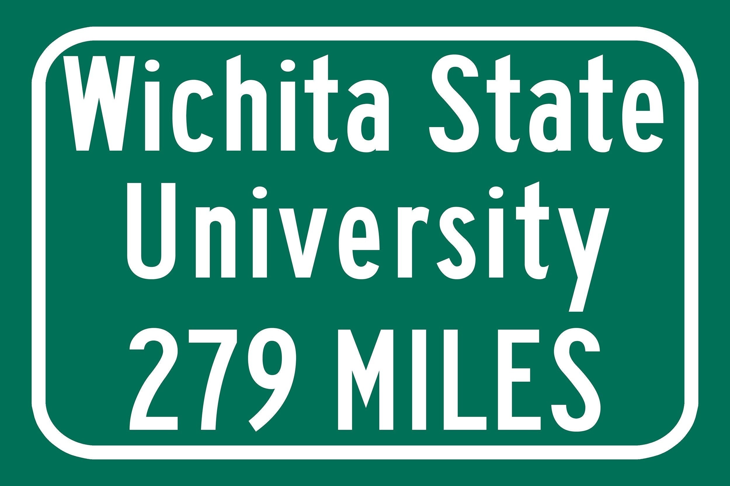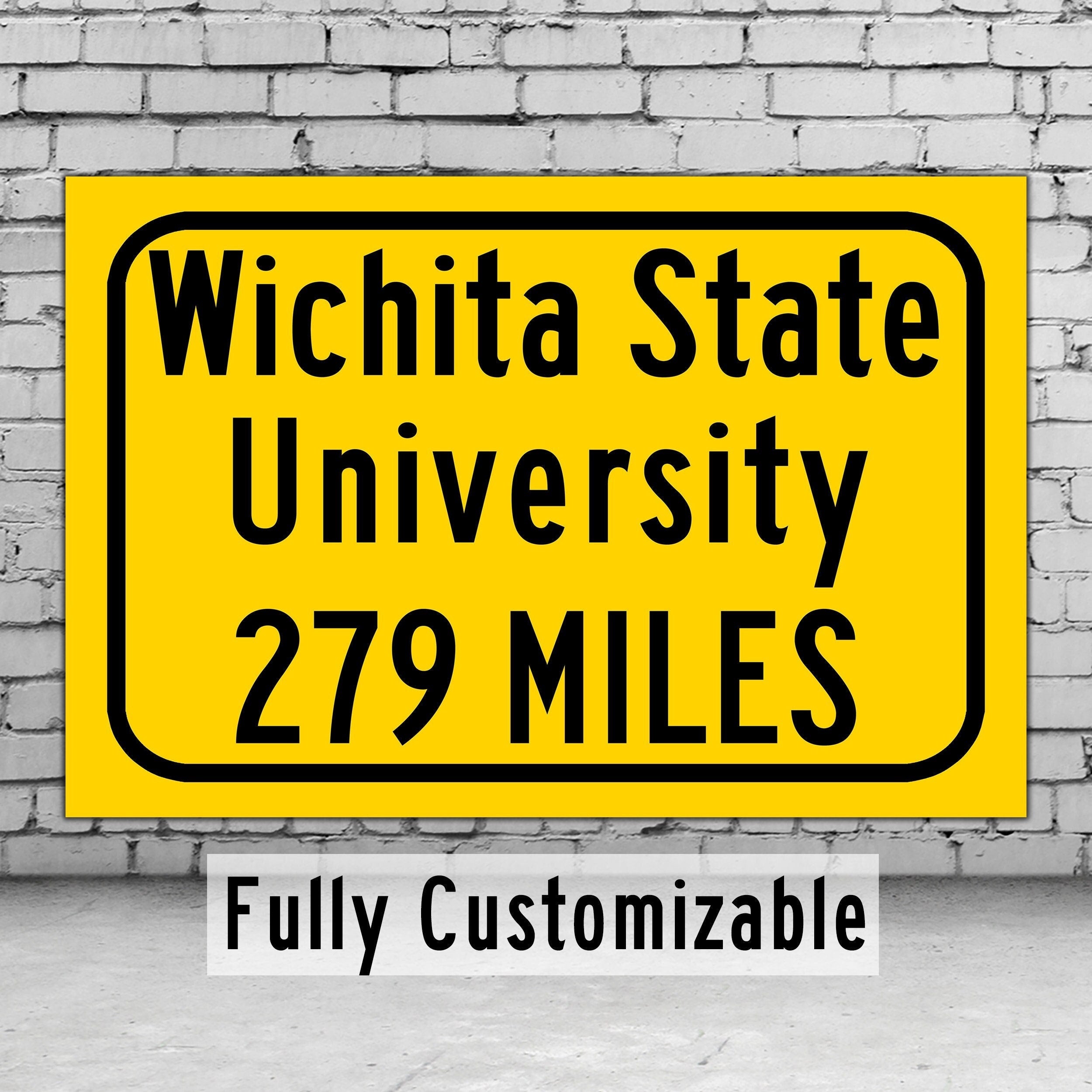 Personalized Highway Distance sign to Wichita State University. Wichita State University . Wichita Shockers sign.