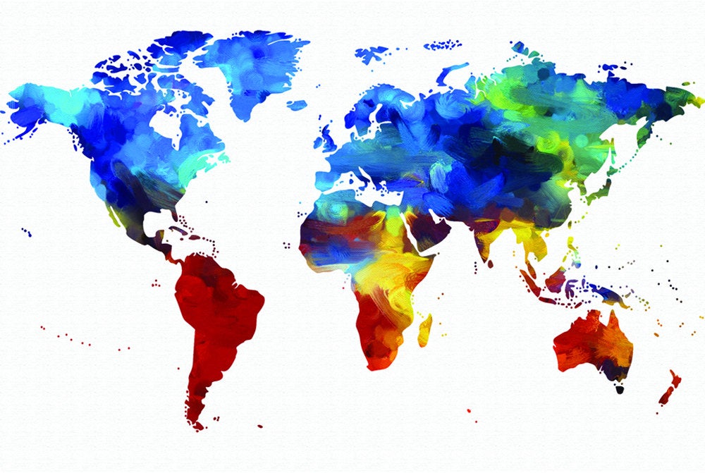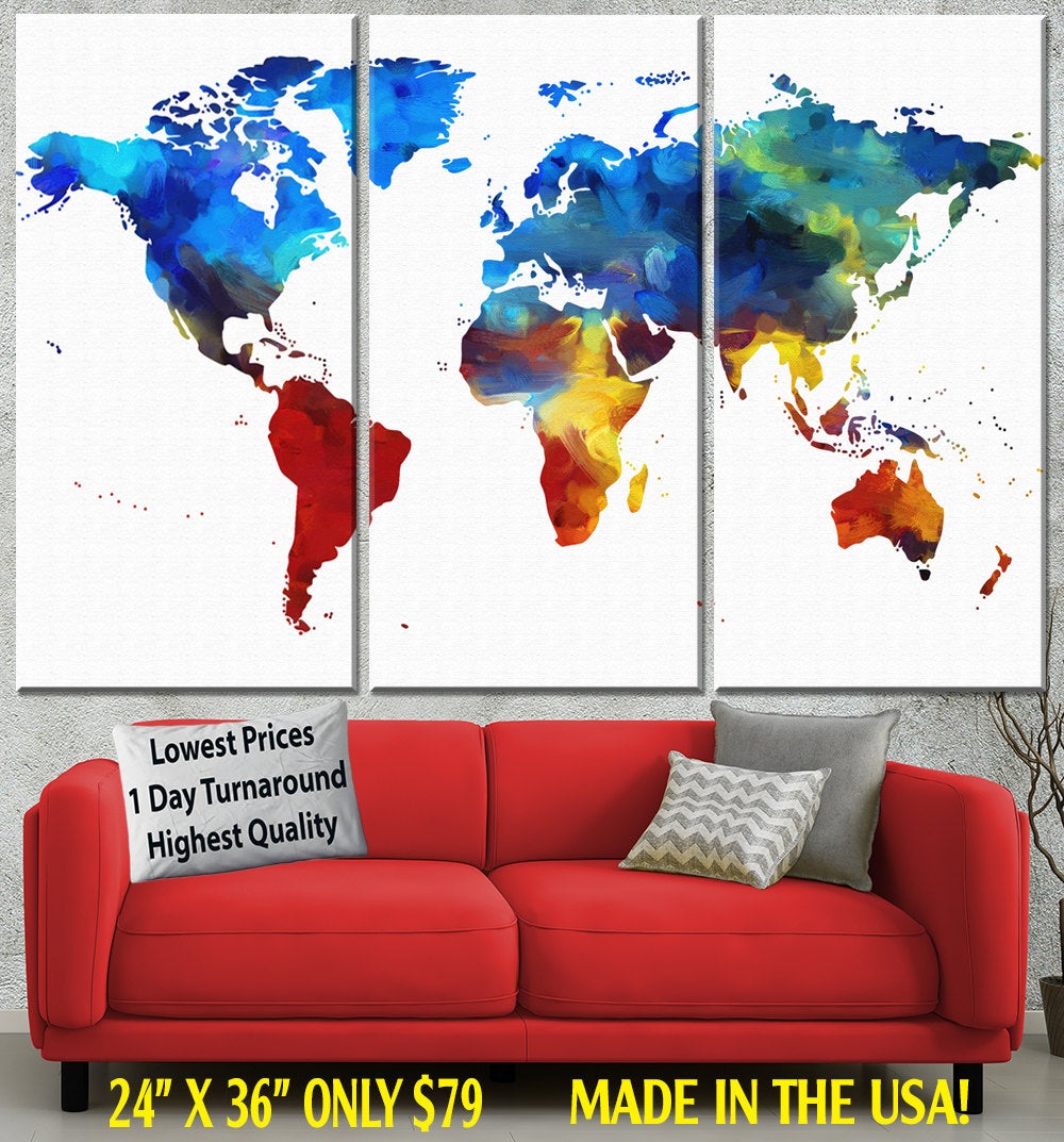 Perfect watercolor map on canvas for a great decorative wall piece